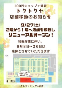 このたび「トクトクヤ大内店」は、2階から1階へ移転し、2025年9月27日(土)よりリニューアルオープンいたします。